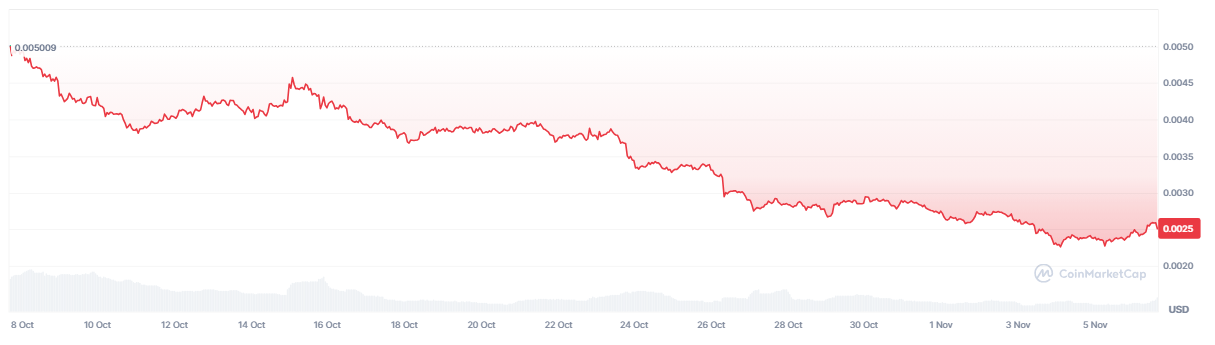 HMSTR worth down within the final 30 days. Supply: CoinMarketCap