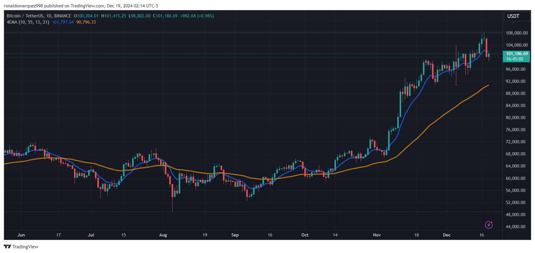 The Bitcoin worth skilled a major downturn on Wednesday, briefly falling under the $100,000 milestone because the US Federal Reserve’s (Fed) cautious outlook on rate of interest cuts dampened crypto investments.