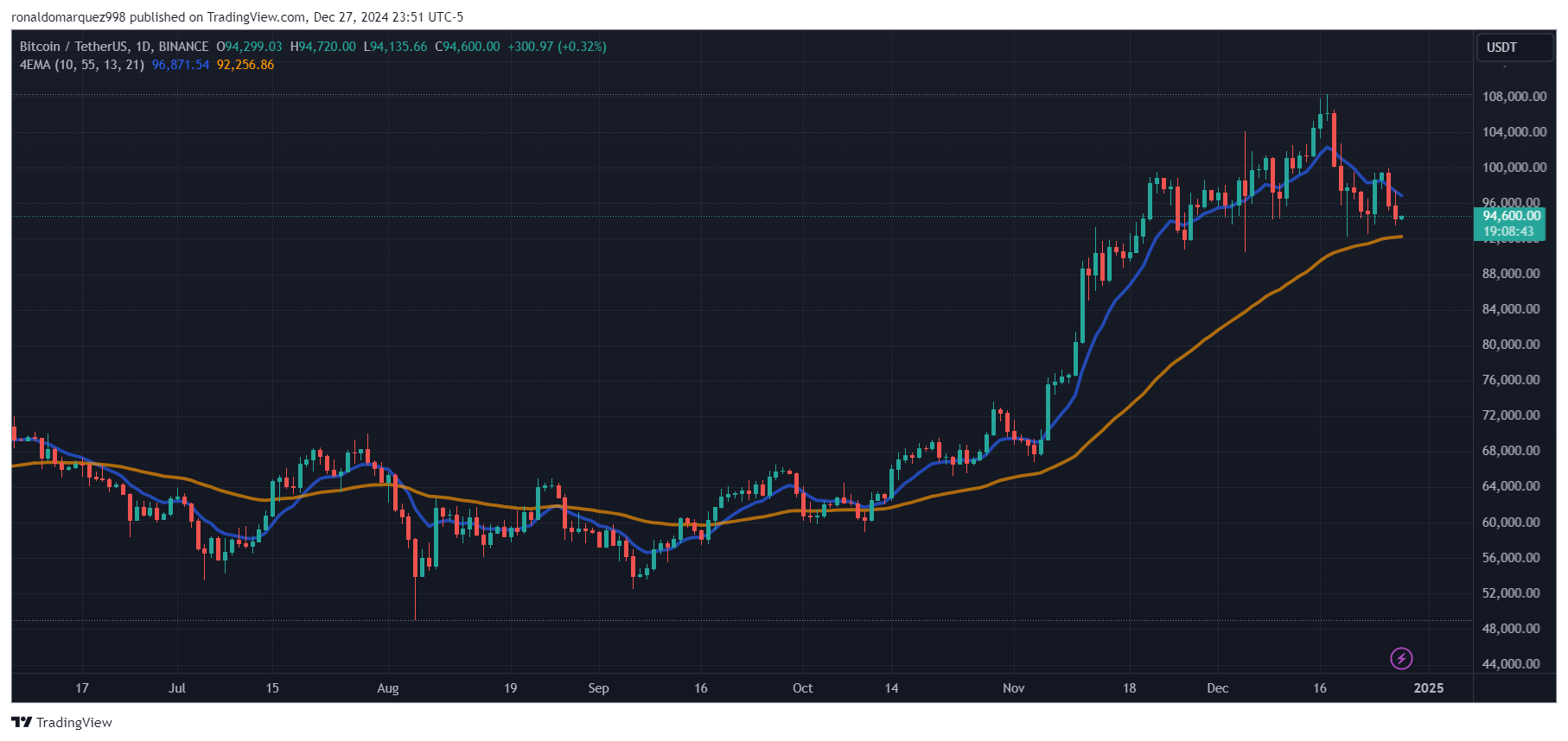 On the time of writing, the market’s main crypto trades at $94,560, posting losses of two% and three% on the 24-hour and weekly time frames, respectively.
