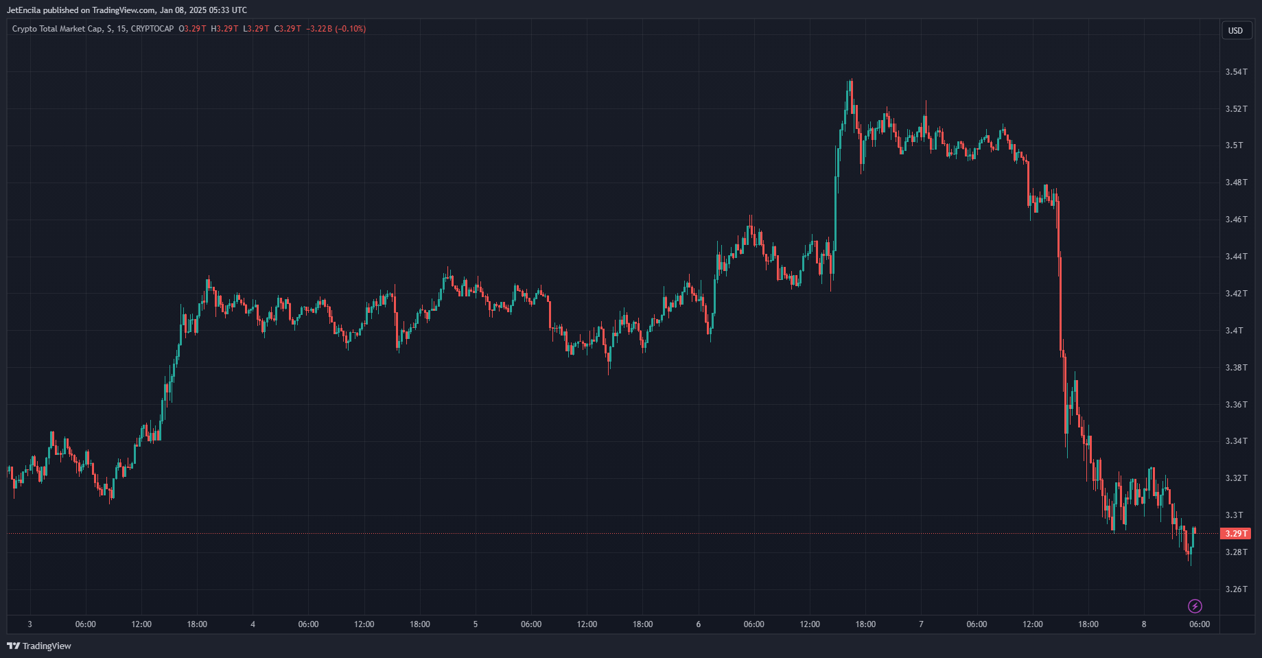 Complete crypto market cap at $3.29 trillion on the each day chart: TradingView.com