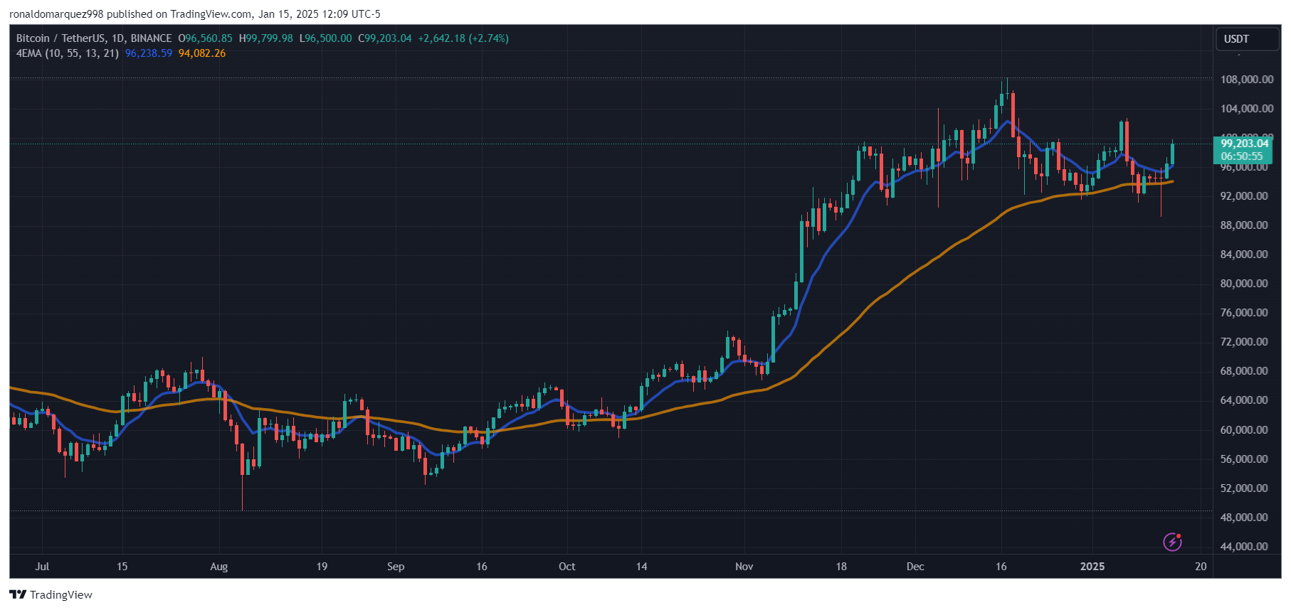 On the time of writing, the market’s main cryptocurrency, Bitcoin, is buying and selling at $99,200, up 3.3% within the 24-hour timeframe.