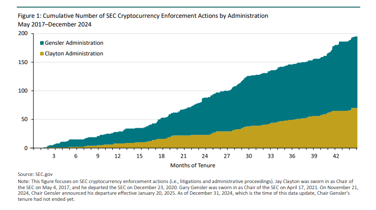 Between the Gensler and Clayton administrations, there’s a stark distinction of their approaches to cryptocurrency regulation. Gensler oversaw 125 enforcement actions in simply over three years, whereas Clayton initiated solely 70 throughout a comparable timeframe.