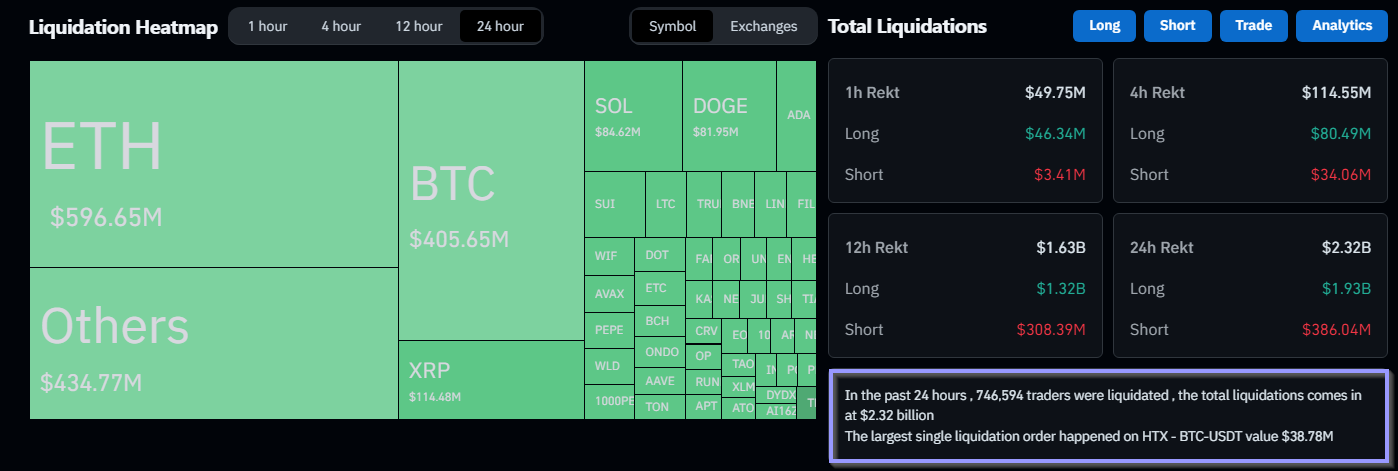 In line with Coinglass, greater than $2 billion in crypto liquidations had been recorded within the 24 hours after the deliberate new tariff was introduced by the US President.