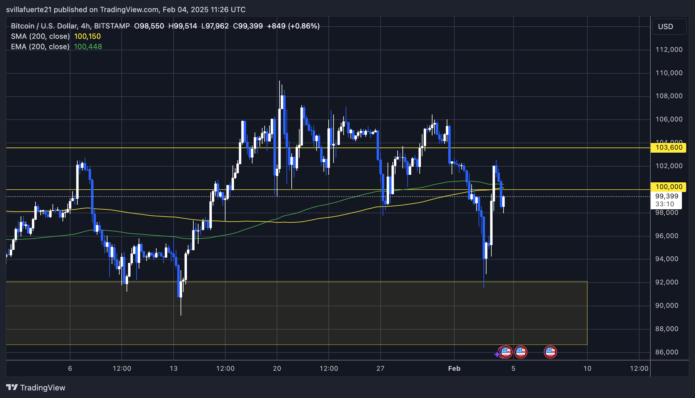 BTC testing liquidity beneath $100K | Supply: BTCUSDT chart on TradingView