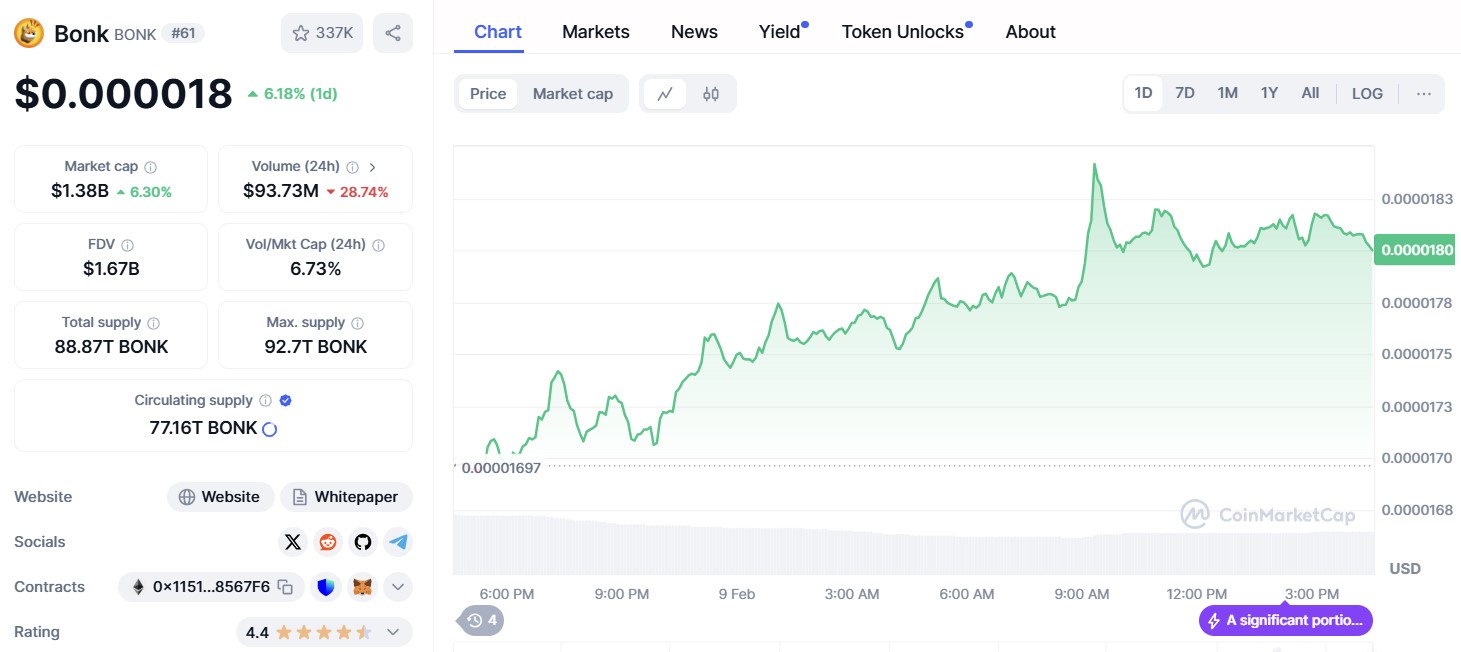 5. Bonk ($BONK) – OG Canine Meme Coin to Get a Enhance with Solana ETF
