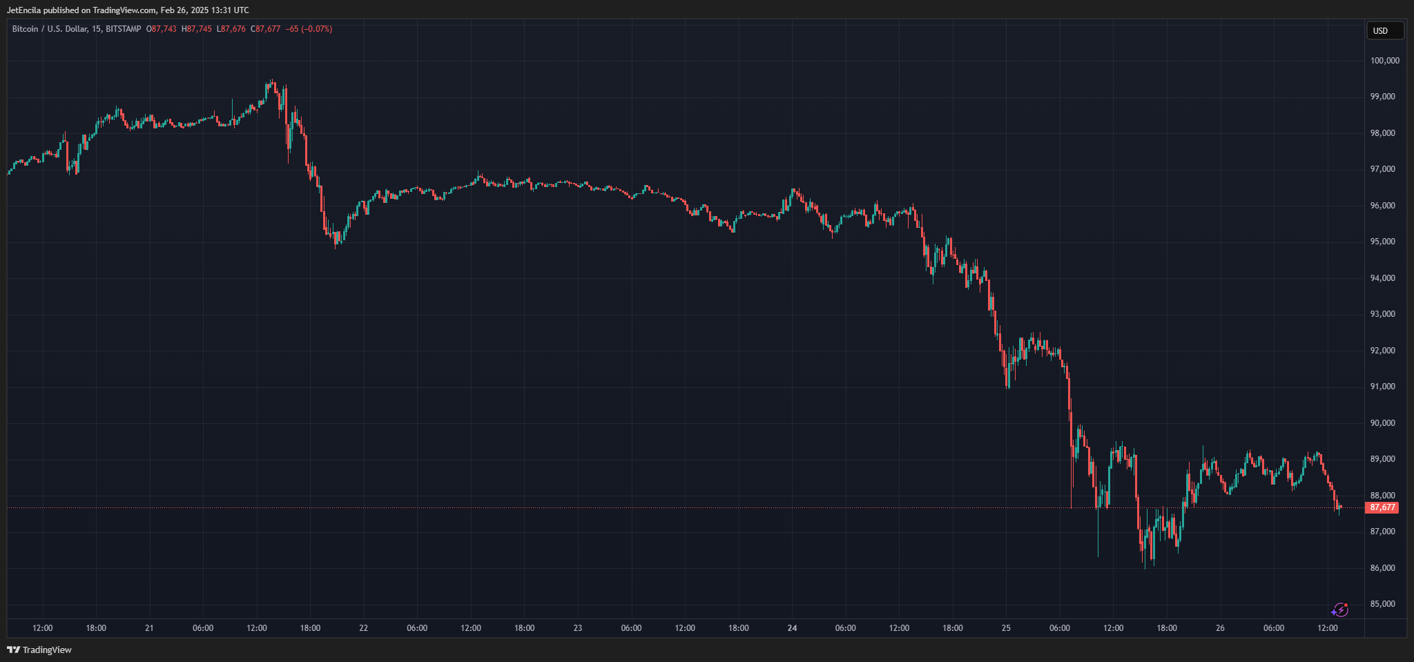 BTCUSD buying and selling at $87,721 on the every day chart: TradingView.com