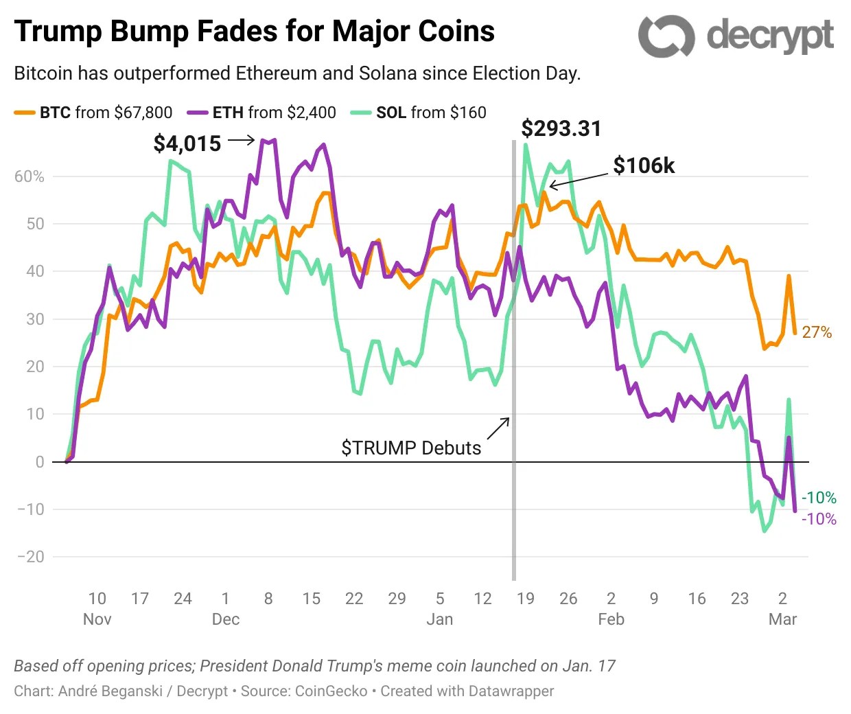 For XRP, Trump’s victory signaled that Ripple’s years-long courtroom battle in opposition to the SEC was set to conclude. Kendrick stated, “The bounce in XRP was extra catch-up associated to that.”