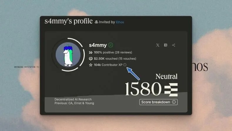 The Ethos web site places it merely: “Contribute and earn by constructing your fame, backing others or penalizing dangerous actors. Use the Ethos credibility rating to raised perceive who you possibly can belief and who to keep away from.”