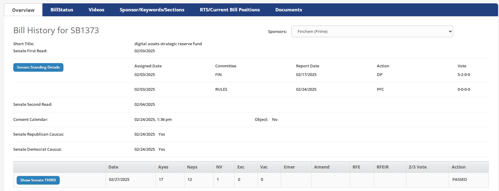 SB 1373 would create a Digital Property Strategic Reserve Fund comprised of digital property seized in a felony continuing. The state treasurer would handle this fund and will make investments as much as 10% of its whole quantity into digital property every year.