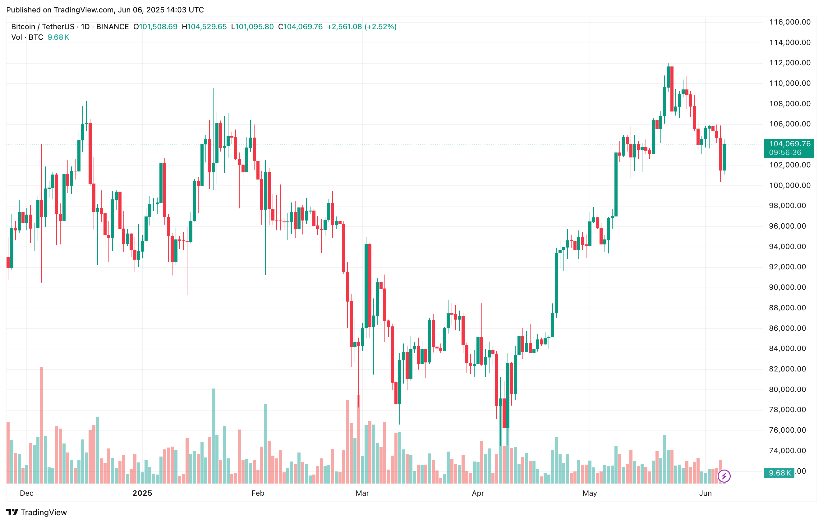 That stated, some analysts urge warning, anticipating BTC to crash under $100,000 earlier than resuming its bullish momentum. At press time, BTC trades at $104,069, down 0.5% up to now 24 hours.