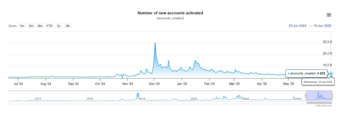 The chart offered by the analyst, overlaying pockets creation information from June 2024 to June 2025, reveals an simple spike in community exercise between November and early January—a surge that peaked throughout a interval of heightened market enthusiasm following the US elections. Because the post-election euphoria pale and investor sentiment cooled off, XRP’s on-chain metrics, like day by day new account creations, naturally returned to decrease ranges.