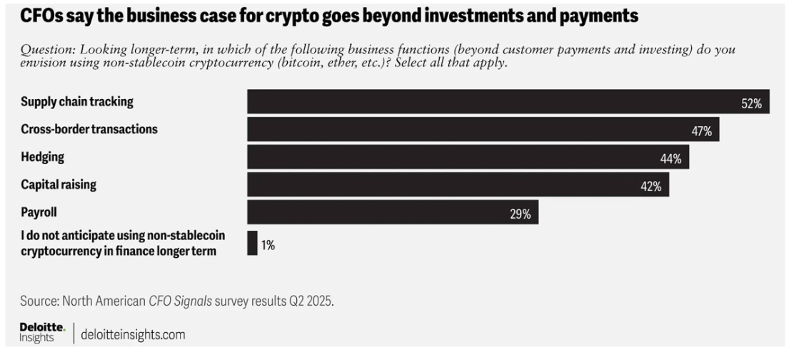 Notably, the Deloitte survey hyperlinks rising curiosity in crypto adoption to latest US coverage strikes. A March government order by President Donald Trump established a Strategic Bitcoin Reserve, and June’s passage of the GENIUS Act has begun to formalize the regulatory panorama. These indicators from the US seem like boosting CFOs’ confidence in cryptocurrencies.