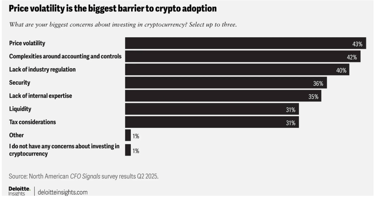 Regardless of the rising curiosity in digital currencies, CFOs stay cautious. Within the June 4 – 18 survey, 43% of respondents cited worth volatility as their prime concern. This hesitancy underscores the continuing uncertainty monetary leaders face as they consider the dangers and potential advantages of integrating crypto into company treasury methods.