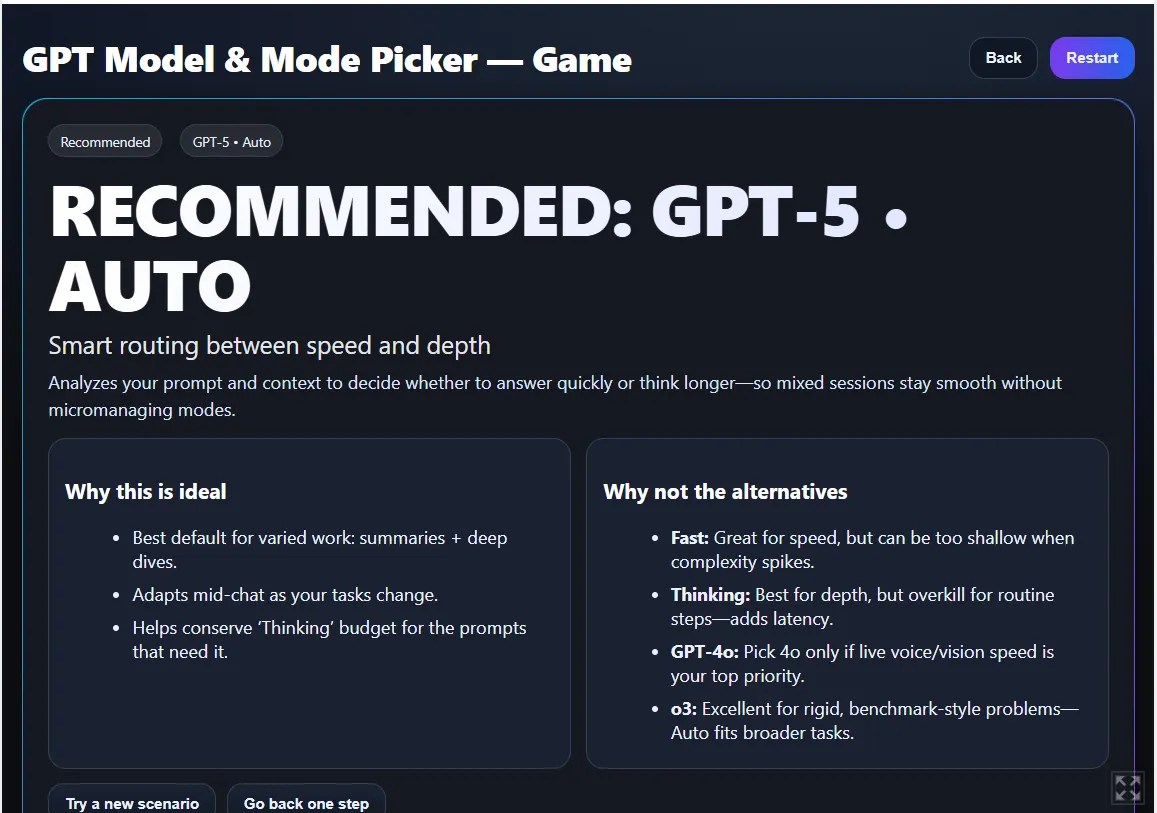 - Should you’re unsure… simply stick to GPT-5 in Auto mode. It’s good sufficient to deal with virtually something you throw at it.
