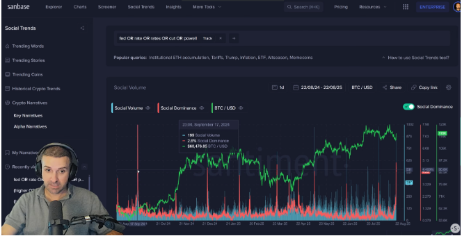 Santiment analyst Brian pointed to a traditional market sample: purchase the rumor, promote the information. He famous that whereas ether led current good points and bitcoin confirmed power, the spike in mentions tied to Fed coverage might have pushed sentiment towards euphoria.