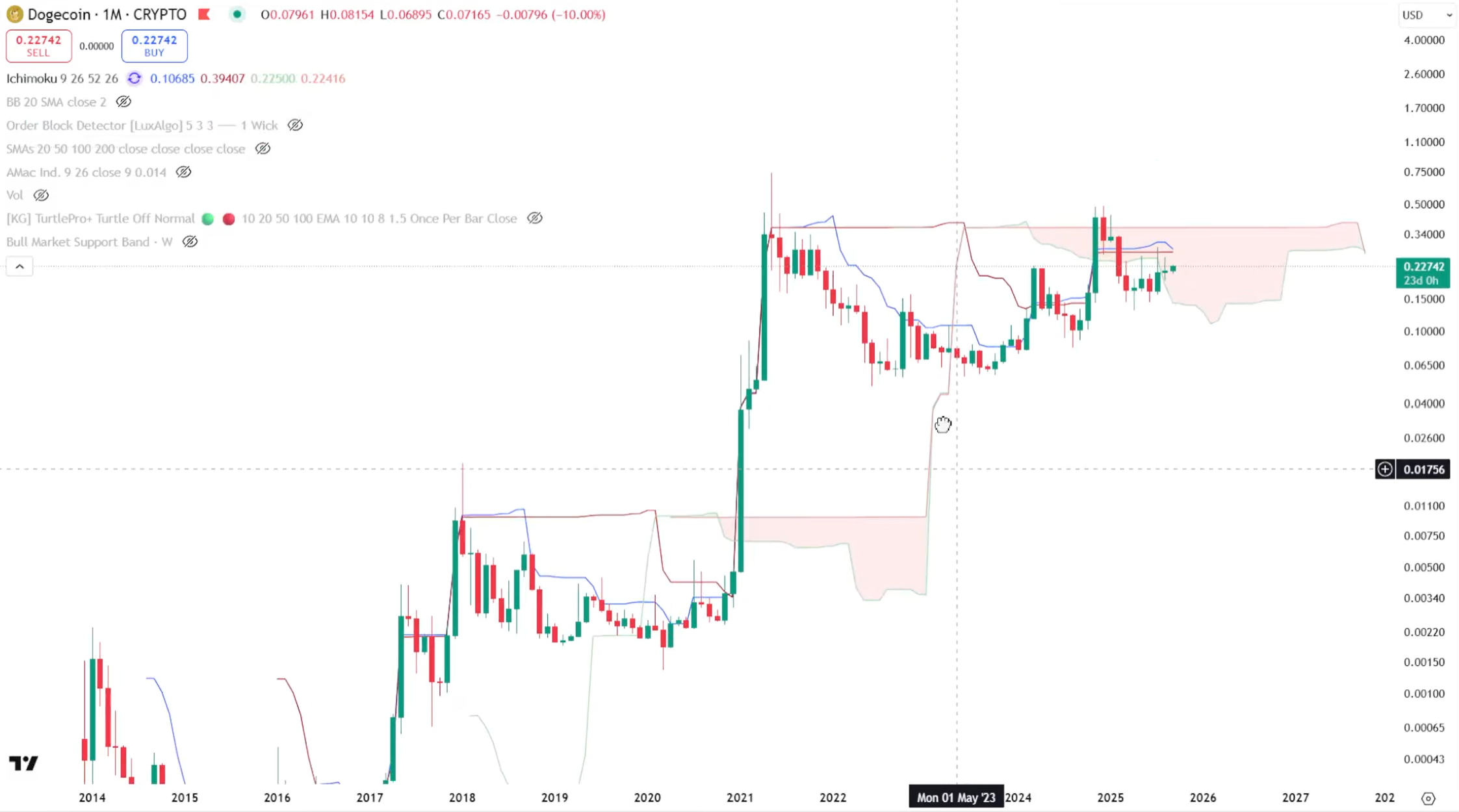 Dogecoin Ichimoku Cloud analysis