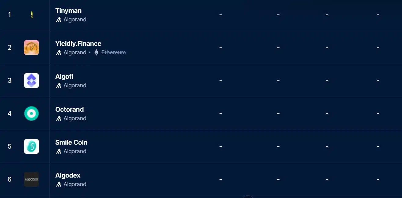 For starters, extra tasks are actively utilizing the Algorand blockchain to construct DeFi functions. The truth is, based on Dappradar, there are 40 dApps constructed on Algorand with 12 DeFi functions.