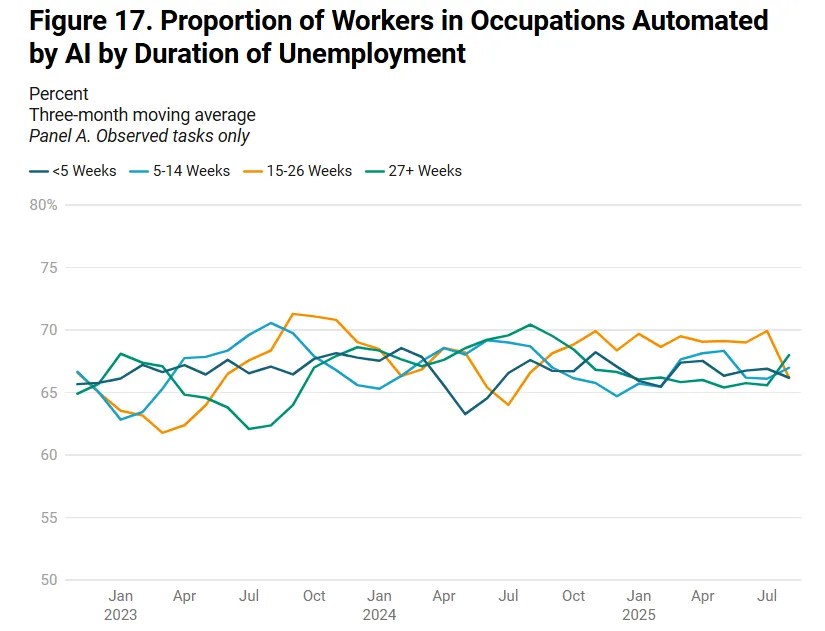 - Excessive AI-exposure jobs—legislation, finance, customer support—confirmed no displacement in federal knowledge.