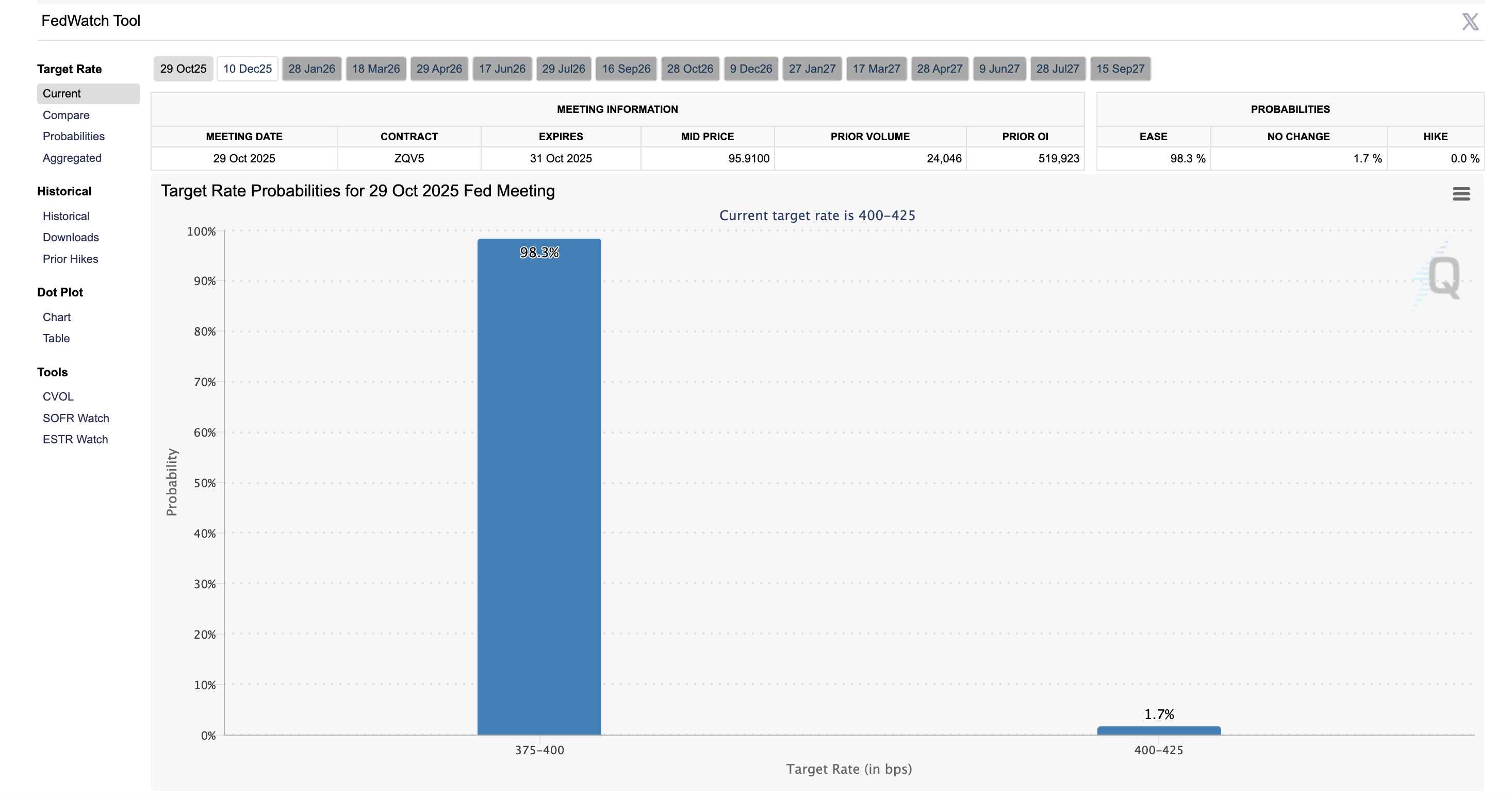 The following FOMC assembly is scheduled for Wednesday, October 29, 2025, and there may be already a serious clamor round what the Fed is planning on doing. The present market headwinds level to a good final result for threat belongings similar to Bitcoin and different cryptocurrencies, with anticipated price cuts.