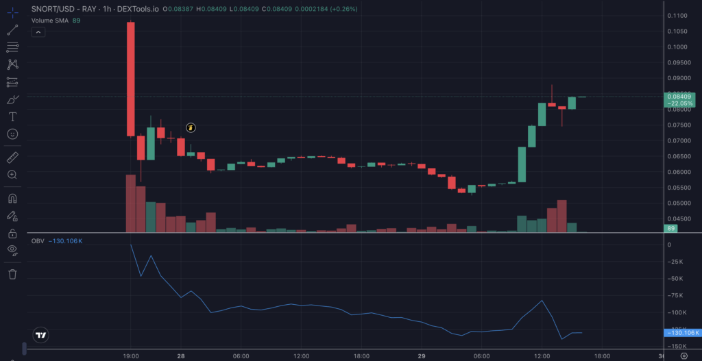 The value chart exhibits SNORT forming a base after touching lows close to $0.052, with current candles suggesting accumulation and an early reversal sample taking form. If sustained, this might mark the underside for the token’s first buying and selling section.
