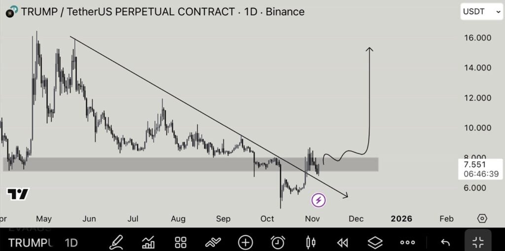 Whereas TRUMP provides publicity to political volatility, its present worth of roughly $7.49 per token makes it a high-barrier speculative asset.