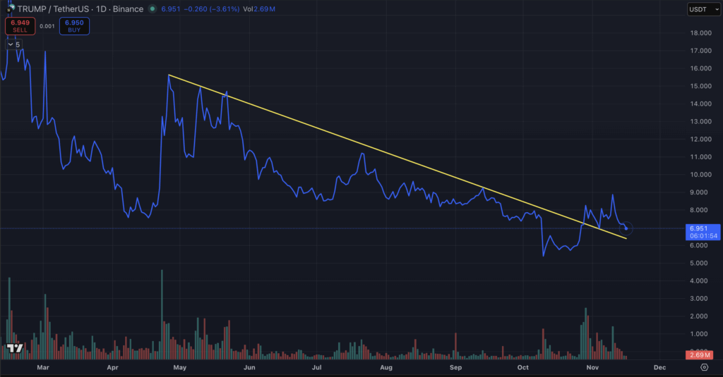 Notably, Official Trump has damaged out of a multi-month descending trendline and is at the moment retesting the breakout degree.