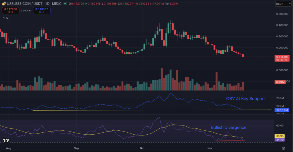 The token value fell by almost 25% on Sunday. Nonetheless, it has now created a bullish divergence within the day by day timeframe, a decrease low in value with a better low in RSI. Furthermore, its on-balance quantity (OBV) is at a key help degree.