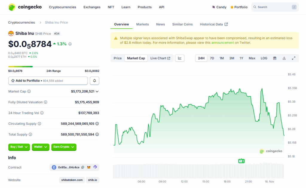 This comes at a time when Shiba Inu’s value is struggling. SHIB is down 1.8% up to now 24 hours, 10.8% on the week, 7.1% over the previous 14 days, and eight.5% within the earlier month. Since November 2024, the token has dropped by about 62.7%. A wave of latest adoption — particularly tied to a widely-used monetary product — might assist stabilize sentiment.
