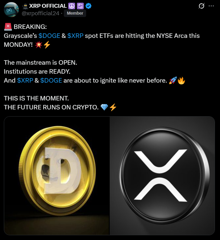 Grayscale's DOGE, XRP ETFs to Go Reside on NYSE Monday