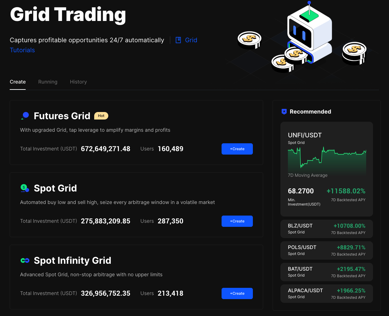 In case you’re into automation, which appears to be the speak of the city in 2025, BingX has you coated. It has grid buying and selling bots for each spot and derivatives.