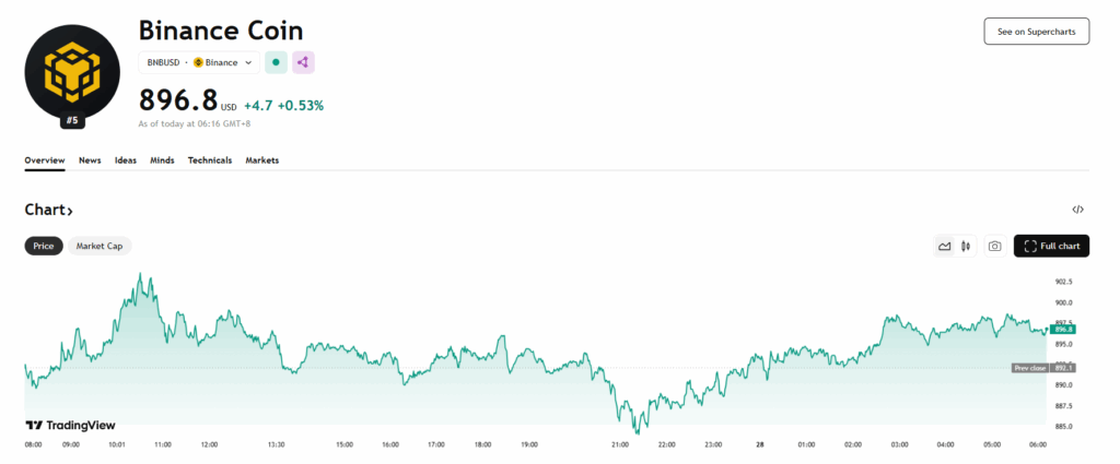 • BNB rose 4.25% to $891 regardless of a significant drop in community exercise.