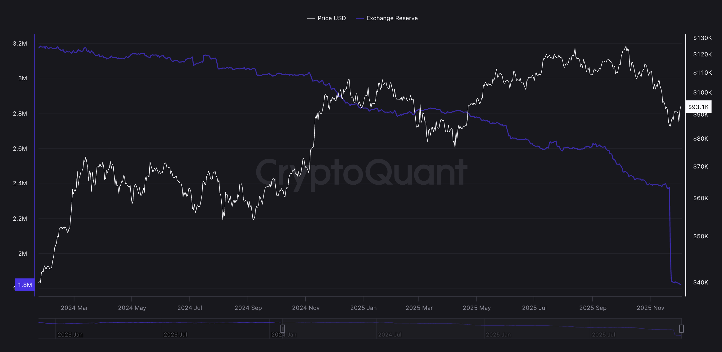 On the on-chain facet, Bitcoin change reserves have not too long ago posted a significant drop, falling to their lowest stage in years. This sharp decline in exchange-held BTC is usually seen as bullish, because it suggests cash are being moved into chilly storage, possible for long-term holding.