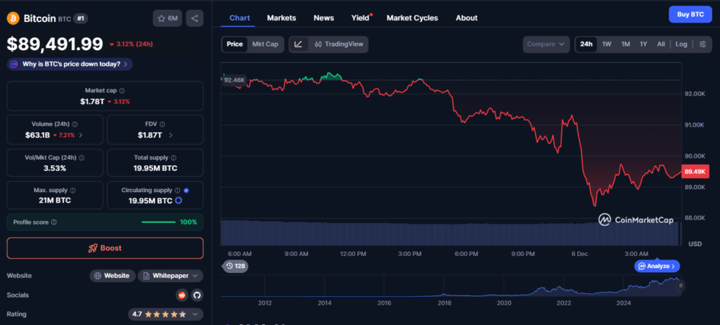 With solely weeks left within the 12 months, merchants appear much less satisfied that Bitcoin can mount a powerful breakout. Odds for BTC hitting $95,000 have slipped to 61%, whereas the probabilities of a $100,000 end sit at a modest 32%. That quantity was far increased earlier this 12 months however has progressively light as volatility, macro noise, and liquidity issues weigh on conviction. It’s not outright bearishness — however it exhibits a market that’s bracing for a quieter shut.