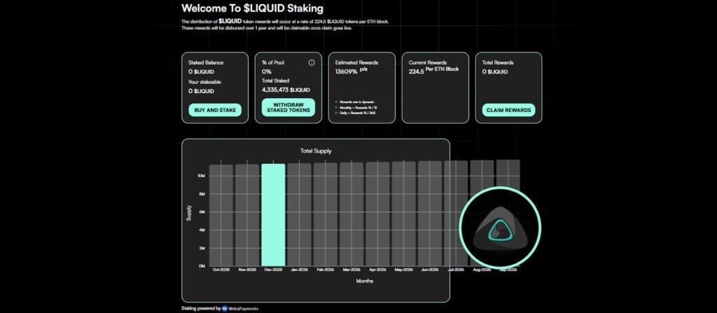 Staking kinds a central a part of the LiquidChain ecosystem. Present estimates place rewards at over 13,000%, reflecting sturdy incentives for early participation. This helps assist the community throughout its foundational phases.