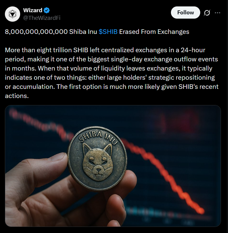 The broader crypto market has been underneath bearish situations since October’s historic single-day liquidation occasion, which marked one of many sharpest corrections in years. This weak spot prolonged by means of December, limiting speculative inflows into high-risk property like SHIB. As a memecoin, Shiba Inu is determined by sentiment-driven rallies, and the present setting has made it troublesome for retail merchants to push costs greater.