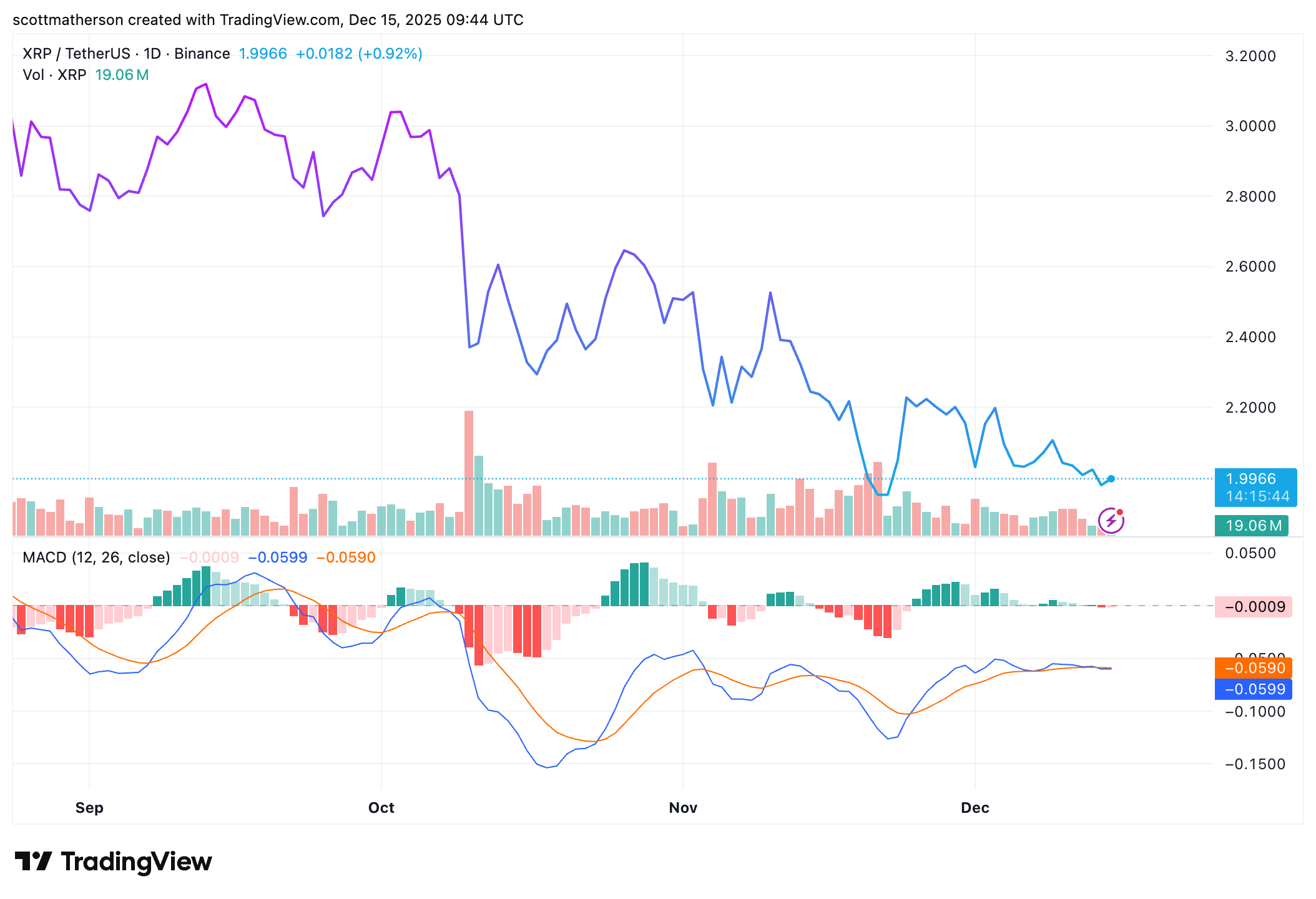 That sample is why the $1.90 to $1.80 vary is considered as essentially the most life like draw back zone if XRP breaks beneath $2 and promoting strain resumes. In accordance with Rector, a dip beneath $1.90 might open the door for a quick check of $1.80, and that is as little as the XRP value may go earlier than a bounce. Such a transfer would nonetheless match inside the broader higher-low construction that has outlined XRP’s value motion all year long.