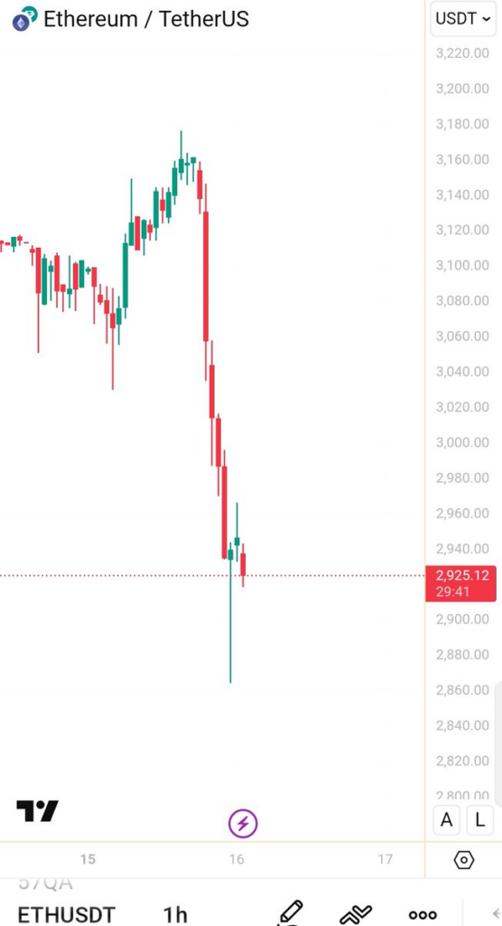Ethereum dropped roughly 9% within the final eight hours, sliding towards the $2,930 degree as promoting strain intensified throughout the broader crypto market. The transfer got here alongside renewed weak spot in Bitcoin, which slipped again into the mid-$86,000 vary, dragging sentiment decrease throughout main belongings. The decline wasn’t tied to a single headline, however moderately a continuation of fragile threat urge for food that’s been hanging over the market since October.