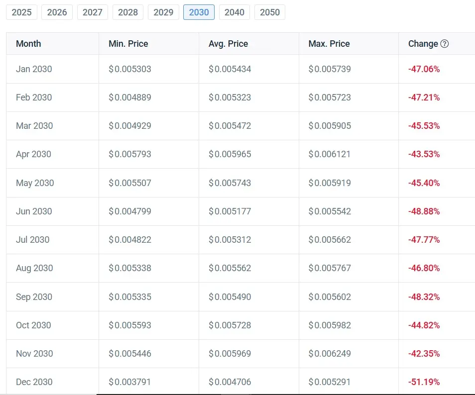 Including to the pessimism, on-chain knowledge and forecasting platform CoinCodex has issued a notably bleak outlook for VeChain. Their projections recommend VET might proceed slipping under its present $0.01 degree and will not reclaim that worth even by 2030. In sensible phrases, which means anybody shopping for now might nonetheless be sitting on losses years down the road.