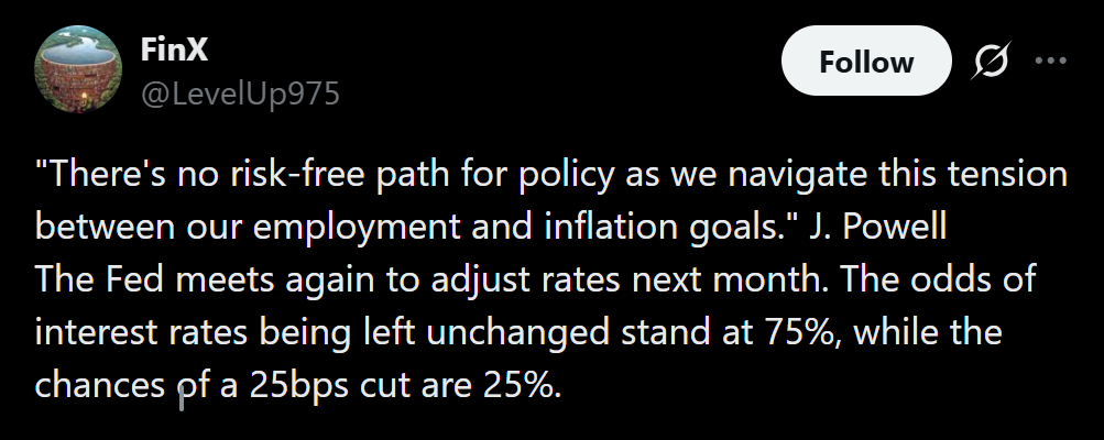 The restrained outlook persists at the same time as different Fed officers lean dovish. Fed Governor Christopher Waller lately reiterated that charges could also be greater than impartial, whereas international central banks just like the Financial institution of England have already begun easing. But Powell’s management continues to anchor expectations, significantly after final week’s Fed assembly revealed inner divisions, together with dissents each for no minimize and for a bigger one.