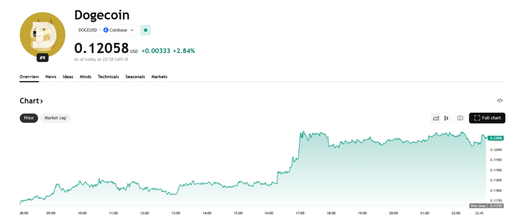 • Dogecoin is buying and selling close to $0.12 after shedding over 60% in a yr