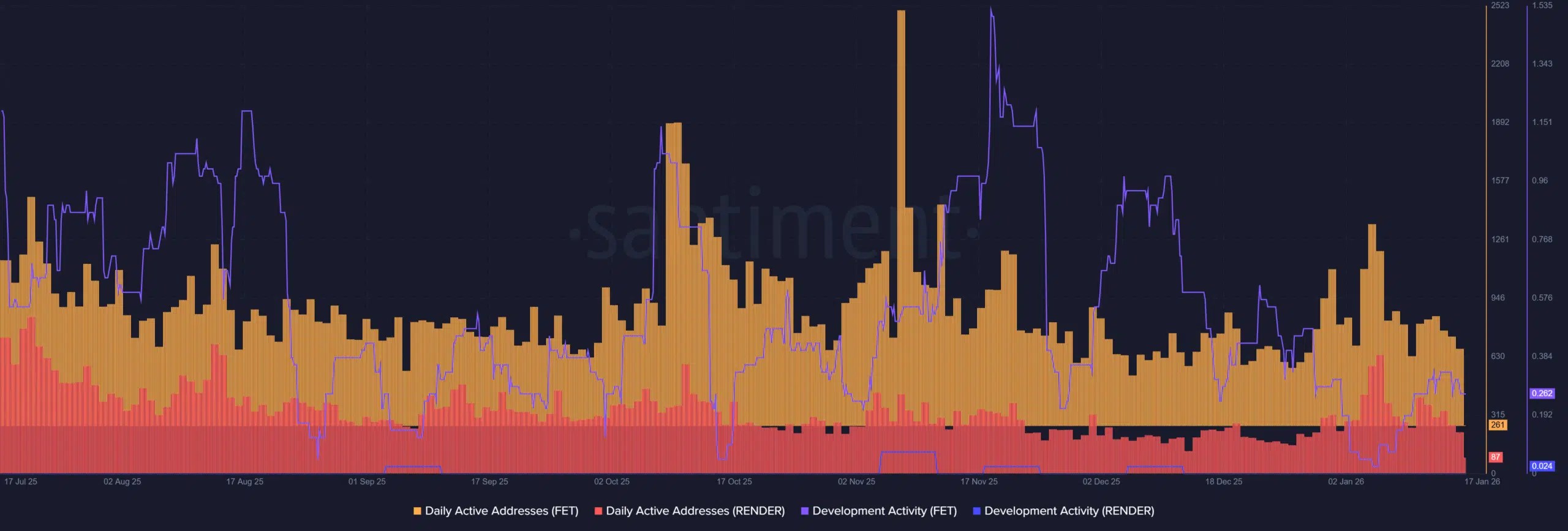 FET vs RENDER Developmental ActivityFET vs. RENDER: Which AI token will lead in 2026?