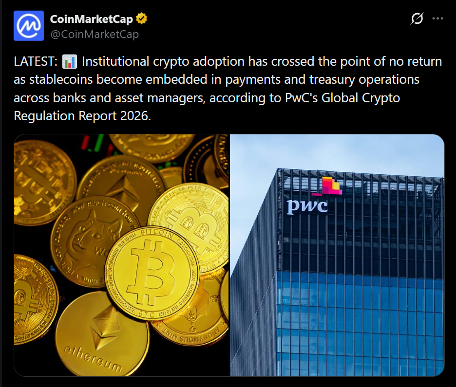 PwC isn’t attempting to time the market or predict worth cycles. What it’s pointing to is one thing far much less flashy and way more sturdy. Institutional crypto adoption has crossed a threshold the place strolling away now not is smart. Massive companies don’t pour years into compliance, authorized structuring, custody methods, and inside controls simply to scrap them when political winds shift. At that time, crypto stops being optionally available and begins being operational.