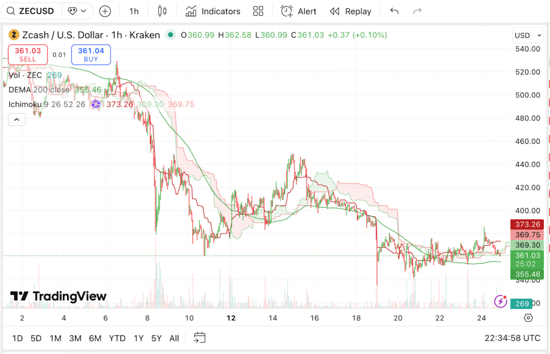 Then again, the worth at which Zcash was final offered out there is famous to be $361.88 and there was a decline within the asset by 1.55%. Moreover, the capitalization measurement has been famous to be at 5.96 billion {dollars}. Then again, the quantity at which the asset was traded on the final day is famous to be 356.62 {dollars}.