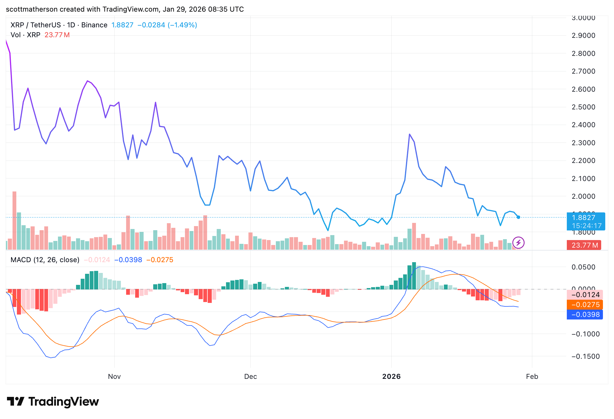 On the time of writing, the XRP value is buying and selling at round $1.86, down nearly 2% within the final 24 hours, in keeping with information from CoinMarketCap.