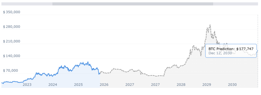 Wanting additional forward, long-term fashions stay formidable. Some forecasts counsel Bitcoin might attain round $78,000 by the top of 2026, with projections extending towards $166,000 by 2030. Extra aggressive long-term outlooks even stretch towards seven-figure territory by 2040 or 2050.