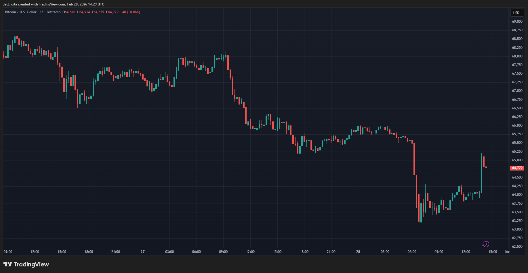 BTCUSD now buying and selling at $64,779. Chart: TradingView