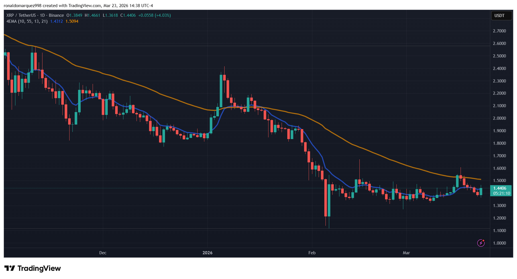 Bitcoin at the moment sits simply above the psychologically vital $70,000 stage, whereas XRP is consolidating close to $1.44. Each tokens have retraced modestly from final week’s highs, with Bitcoin down roughly 4% and XRP off about 5% on the weekly chart after encountering resistance increased up.